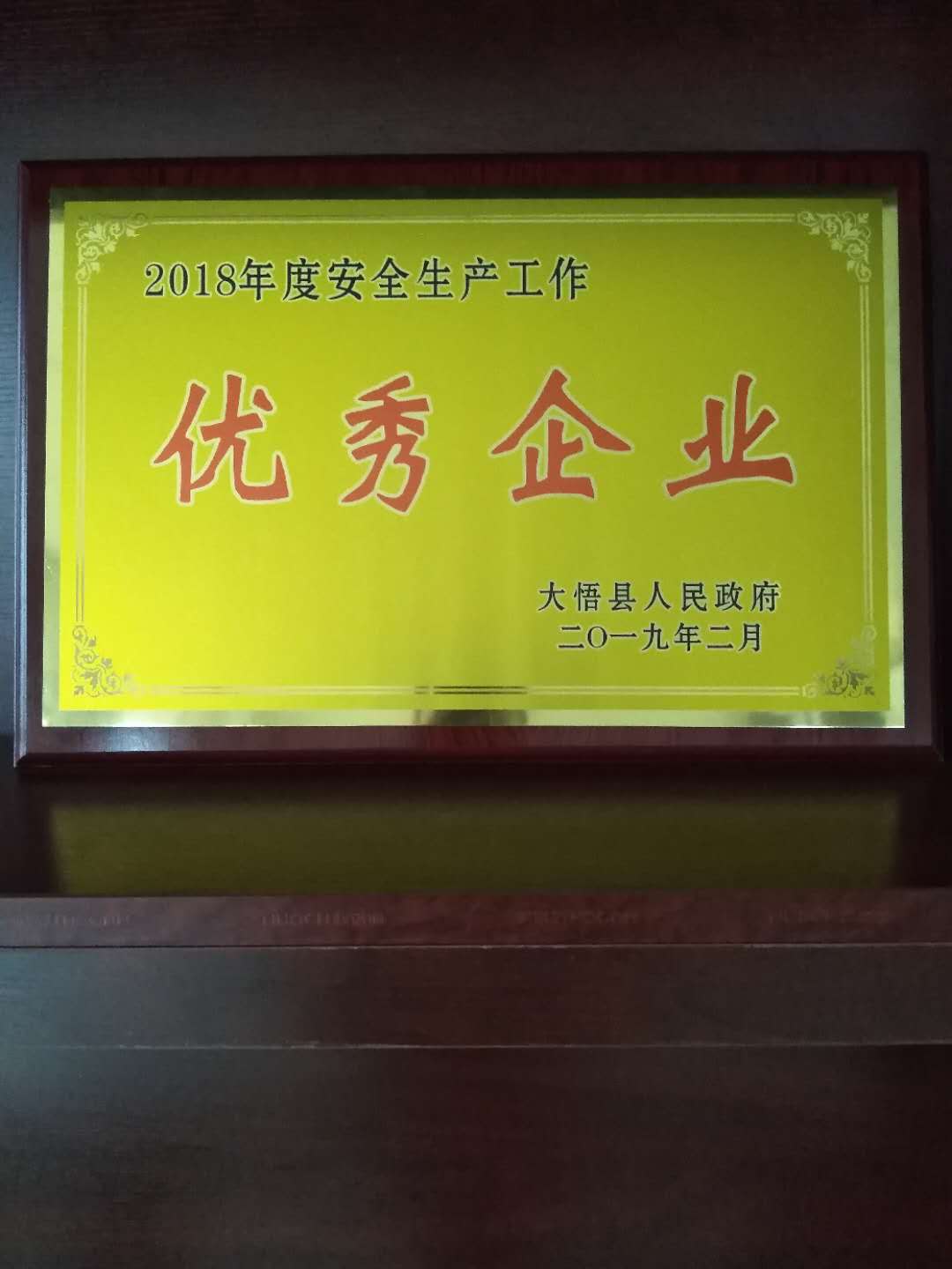 2019年4月1日,我司黃總前往參加全縣安全生產(chǎn)暨消防工作會(huì)議,我司被評(píng)為2018年度安全生產(chǎn)的優(yōu)秀企業(yè)。使得公司更上一層樓。